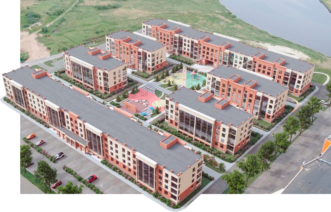 «Cити LIFE» — это малоэтажный проект. Он состоит из шести четырехэтажных домов, образующих уютный закрытый двор. Благодаря уникальному расположению из окон квартир открываются великолепные виды на водную гладь и природные просторы.